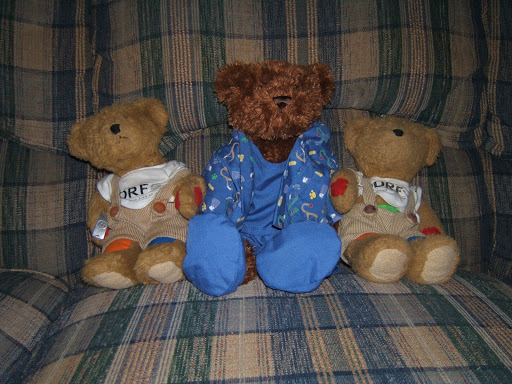 I told my wife of the idea, sometimes after I consult her, I see my ideas are hastily thought out and of no use. She quickly agreed it was a great idea. If the other 2 girls had a bear with diabetes to identify with, my other would have a bear to identify with, one that would calm the fears and provide  a moment of solace. What better I thought than a doctor bear, a diabetes specialist who would take care of my other 2 girls bears and keep an eye on her. Now if you think this is silly, think in terms of a 7 year old, and a 5 year old, and almost 4 year old. There imaginations run wild with stories at play time, bed time and all the time, now integrate that into motif of sisters having Juvenile Diabetes.