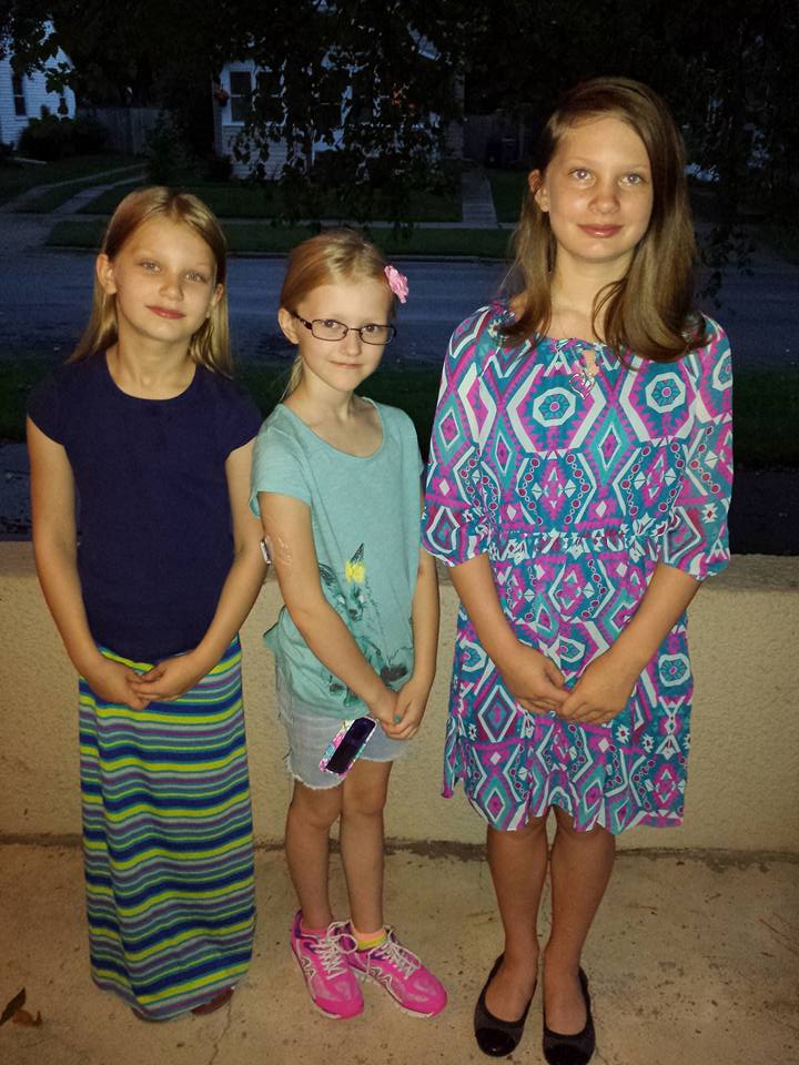 The girls are in 7th, 5th and 4th this year. Here’s the 1st day of school picture. When we told scrunch that he’d have to go to school in a few years, he was unhappy (really was not his reaction, but it’s a funny picture and fits).